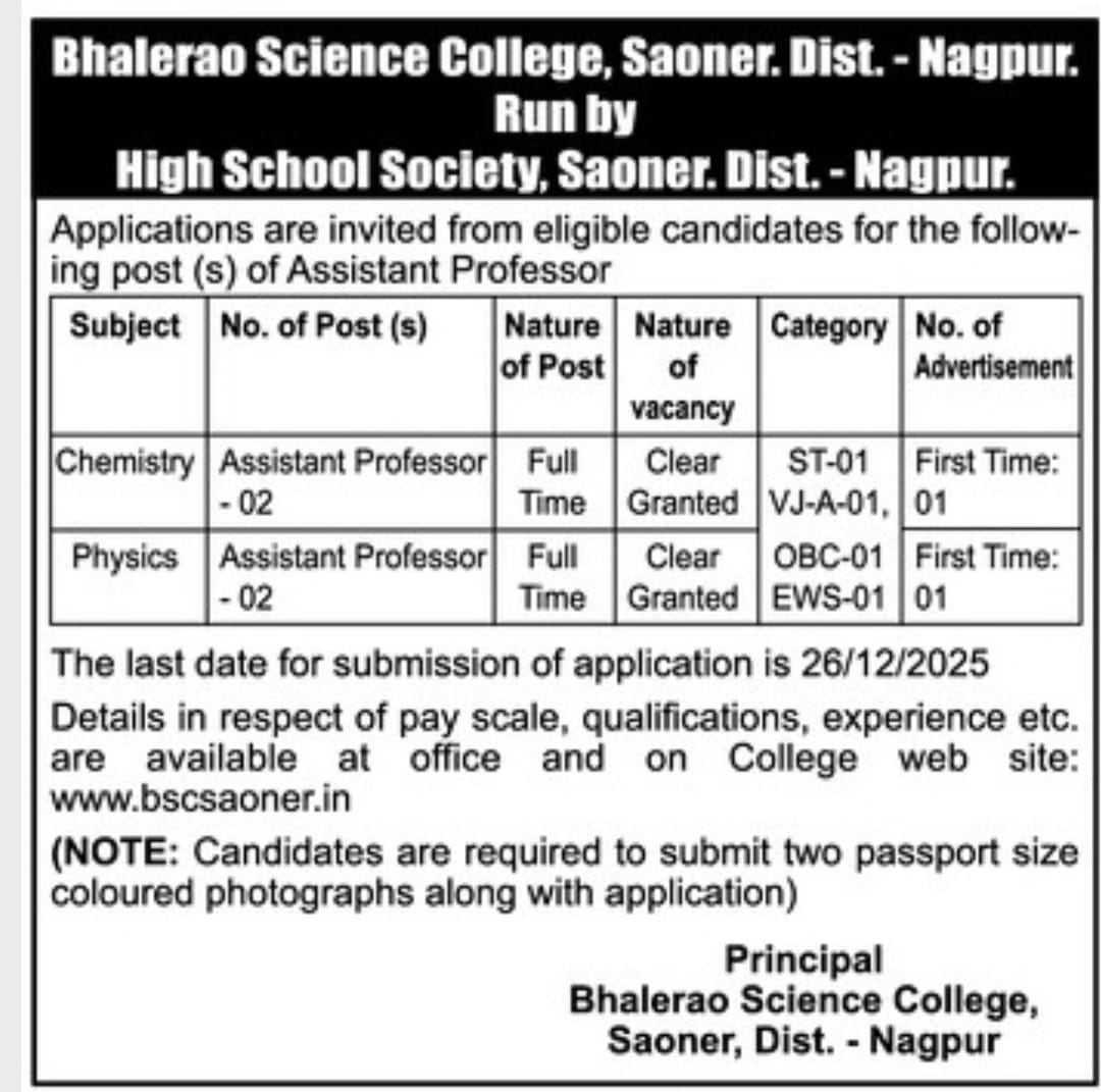 Please Click on the link to download details: Appointment of Assistant Professor dt.10/12/2025
